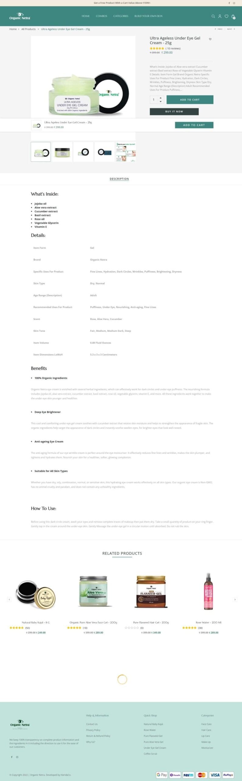Organic NetraWebsite Url: https://organicnetra.com/Platform: Shopify Other WorksAll Bicycle KartShopify YUR OfficialShopify One Point FinanceWordPress ReformediaWordPress Herlyn JewelsShopify Charnock HospitalWordPress Blue Sky Water SportsShopify Priya FabricsShopify MNR – Habtoor Landing PageWordPress Med7 ClinicWordPress Dare NetworkWebflow Earthi AyurvedaShopify Med7 OnlineShopify Brand LadyWordPress Bliss GardenWordPress TCTWordPress WalkarooShopify BluetygaShopify Organic NetraShopify Meruzila Convention centerWordPress CraftiseShopify Lady LoafellaWordPress WatiaaShopify